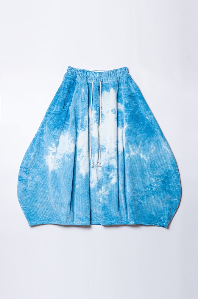 図鑑houseにて手染め藍染したコーデュロイ生地のスカート。