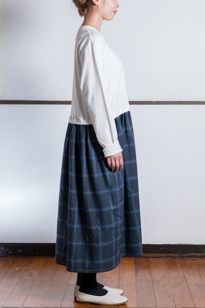ゆったりと体を包み込むようなシルエットのワンピース。